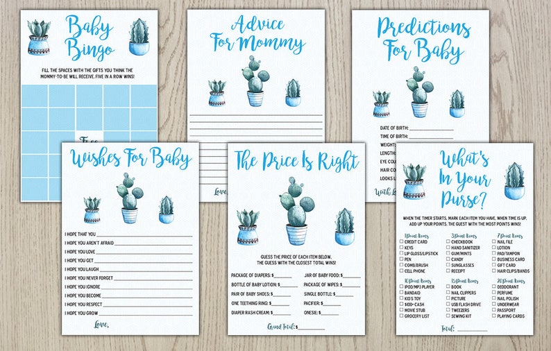 Cactus Fiesta Boy Blue Baby Shower Games Package Printable Etsy